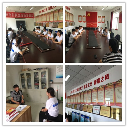 实践团队到达后,受到了村支部的热情接待,李彪副书记十分详尽地为我们介绍了东辛屯村的发展历程,还为大家播放了当地民俗文化发展的视频短片,让实践团成员全方位了解了这个具有发展特色的美丽乡村,同时也提出了具体问题,希望实践团队能够帮助解决。作为旧村改造试点村,东辛屯村现在已经完成了120户的住房改造,先后获得北京市最美乡村、北京市环境建设先进村,北京市体育特色文明村,市级生态文明村,大兴区五个好党支部等荣誉称号。