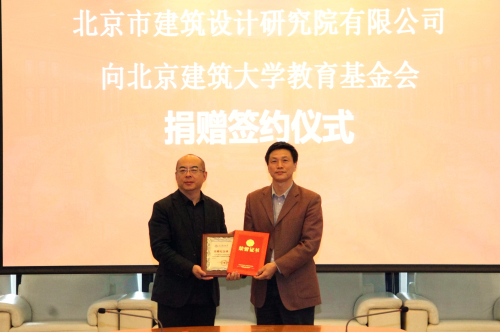 张爱林向北京市建筑设计研究院有限公司颁发捐赠证明书和捐赠纪念牌。