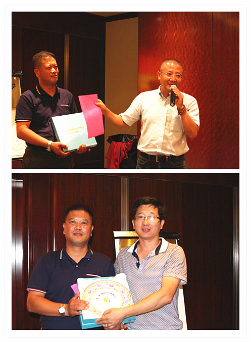 北京市勘察设计研究院市场经营部副部长工民建专业1986级校友刘立东、道桥专业1992级校友李胜勇代表北勘院全体校友,向天津分会赠送了由北勘院全体校友众筹的满含心意的限量版“一带一路”瓷盘,祝愿分会越来越好。