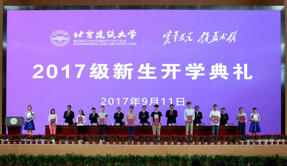 “复兴我国,宜有新国风。愿我同学,肩之我躬。将来世界工学,还以我国为大宗。”2017年9月11日上午9:00,《开云电竞pg软件老校歌》响彻我校新落成的体育馆,2017级新生开学典礼正式拉开帷幕。2761名新入学的2017级本科和研究生新生齐聚一堂,共同见证这一令人难忘的时刻,开启自己人生的建大之旅。开学典礼通过“建大网络直播”网站进行现场直播。学校领导班子成员、校友代表、学校有关职能部门负责人以及各二级学院领导、新生班主任、辅导员、教师代表和全校2017级新生、部分学生家长参加了开学典礼。典礼由党委副书记张启鸿主持。