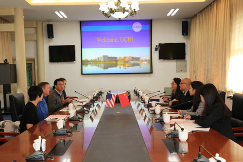 10月24日,美国加州大学伯克利分校海外学习办公室主任达林·曼拉弗、美国SY公司运营总监杰森·南、北京锐尔教育咨询有限公司联合创始人李伟华、张金星访问我校,副校长汪苏会见了客人,国交处处长赵晓红等参加了会谈。