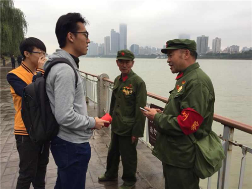 在游览途中,同学们偶遇两位身着旧时解放军军服的中年人。询问得知,他们于1985年退役,曾参加中越自卫反击战。今年恰逢红军长征胜利80周年,特意与其他战友相约湖南,探访毛泽东主席曾经生活、学习的地方。