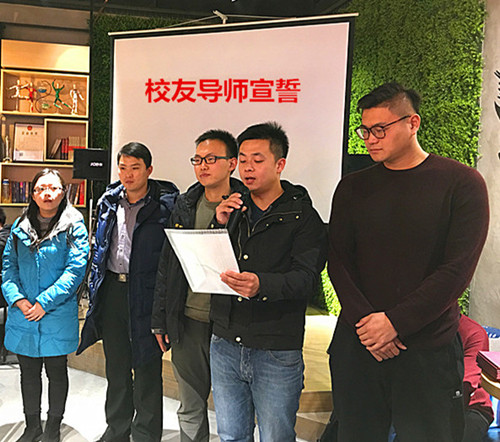 仪式上,校友导师们逐一自我介绍,天然的情感连接,朴实的暖心问候,迅速拉近了导师们与学弟学妹的距离。测绘工程2007级校友马新建带领校友导师们共同宣誓,做出庄严承诺。